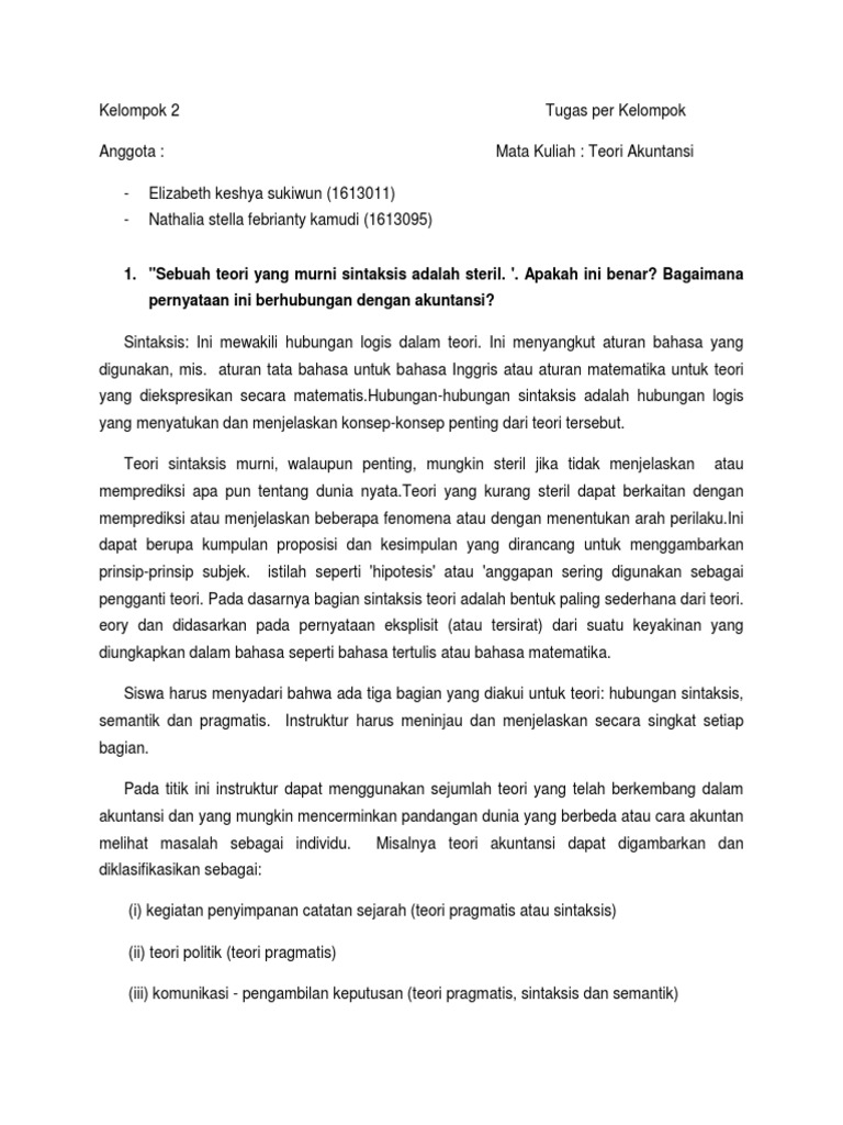 Terjawab • terverifikasi oleh ahli. Oieh karena itu, akuntansi syariah adalah teori yang menjelaskan bagaimana mengalokasikan kekuatan pertama adalah bahwa akuntansi adalah sesuatu yang dibentuk oleh lingkungannya. Savesave pertanyaan teori akuntansi for later. By unknown 09:02 no comments. Akuntansi berkembang sejalan dengan perkembangan masyarakat.